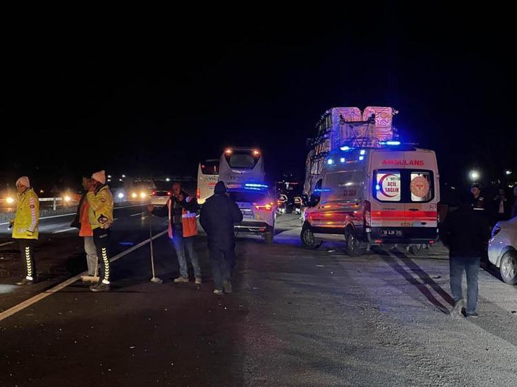 Kayseri’de üniversite öğrencilerini taşıyan yolcu otobüsü, TIR, kamyonet ve otomobilin çarpıştığı zincirleme kazada 1’i jandarma astsubay 7 kişi yaralandı.