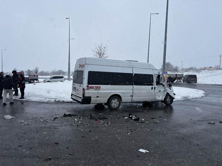 Kaza, saat 14.00 sıralarında Mimarsinan Organize Sanayi Bölgesi 8’inci Cadde'de meydana geldi. Orhan A. idaresindeki 38 P 0097 plakalı işçileri taşıyan minibüs, kar yağışının etkili olduğu bölgede Doğan Ö. hakimiyetindeki 23 HU 061 plakalı TIR'a çarptı.