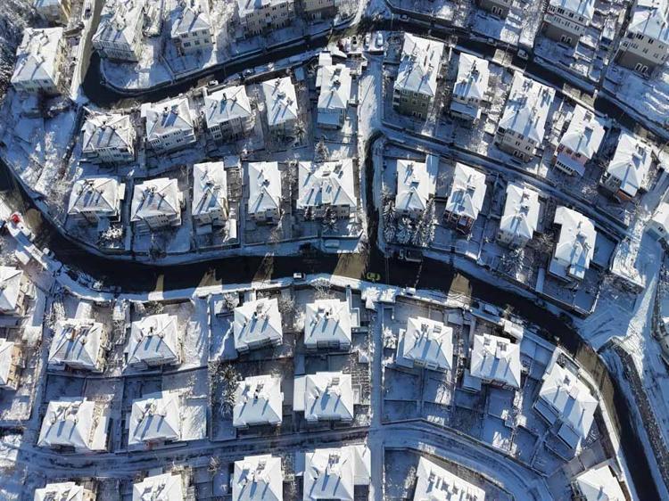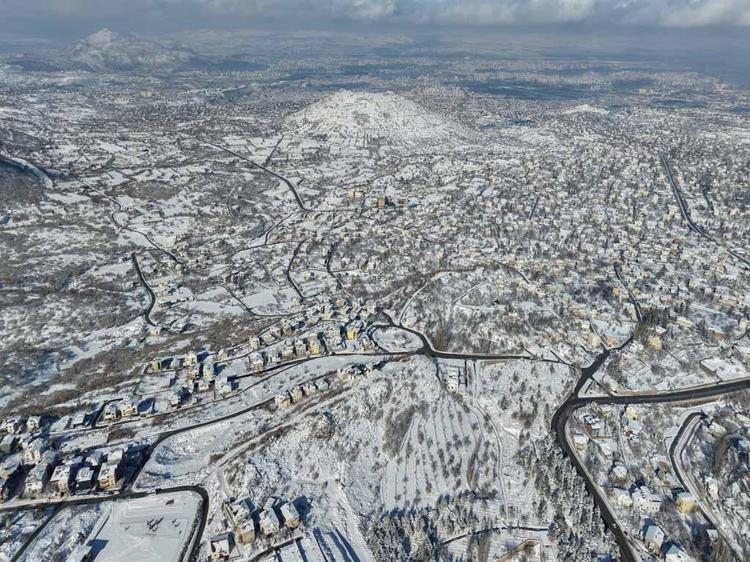 Kentte 2 gün önce başlayan kar yağışı nedeniyle cadde, sokak ve parklar, beyaz örtüyle kaplandı. Ekiplerin, yollardaki temizlik çalışması devam ederken, kar yağışı kentte seyrine doyumsuz manzara oluşturdu. Kentin yüksek kesimlerindeki manzara dronla kaydedildi.