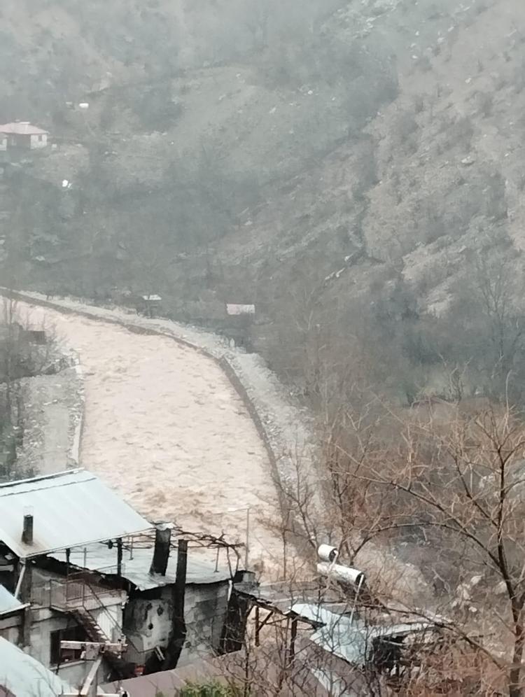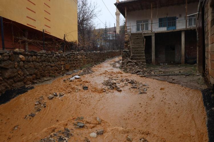 Kayseri'nin Yahyalı ilçesinde sabah saatlerinde etkili olan sağanak sonrası oluşan selde yollar çöktü, bazı ev ve iş yerlerinin giriş katlarını su bastı.