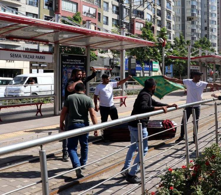 TRAMVAY DURAĞINDA TABUTLU VE ALKIŞLI PROTESTO