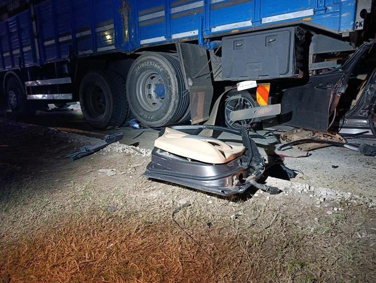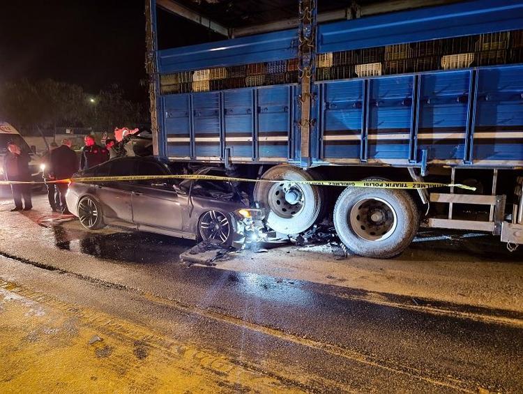 Kaza sonucu yolda duran kamyona otomobil çarptı; 1 ölü, 2 yaralı