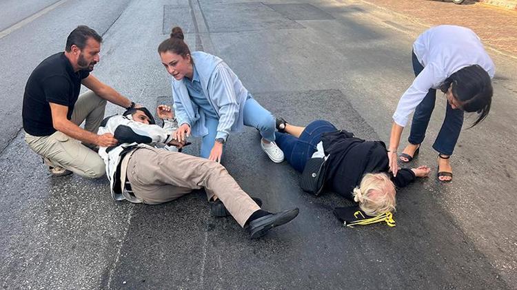 Bu sırada özel bir hastanede çalışan ve 24 saatlik nöbetten çıktıktan sonra evine doğru giden Dr. Meliha Özge Aksoy, kazayı görünce yaralıların yanına gelerek müdahalede bulundu. Aksoy, yaralı Arıkan ile konuşarak durumu hakkında bilgi aldı. Dr. Aksoy, daha sonra gelen ambulans ekibine yaralıları teslim etti. Hayati tehlikesi bulunmayan yaralılar, ambulansla hastaneye kaldırıldı.