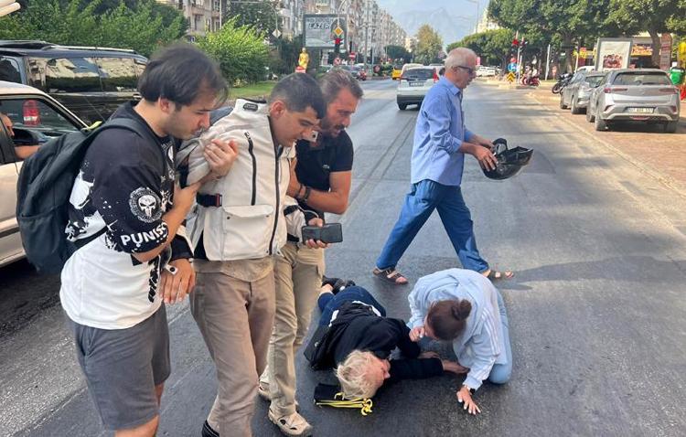 Kaza, saat 10.00 sıralarında Muratpaşa ilçesi 100. Yıl Bulvarı hastane istikametinde meydana geldi. 07 BDK 638 plakalı motosikletle seyir halinde olan Umutcan Konuş ile kayınvalidesi Leyla Arıkan, yola dökülen mazot nedeniyle araç kayınca yere düştü. Hemen arkadan gelen 07 BHE 479 plakalı motosikletin sürücüsü Kemal Hatipoğlu da ani fren yapınca yere savruldu. Ayağa kalkan Kemal Hatipoğlu bir şeyi olmadığını söylerken, Konuş ile kayınvalidesi Arıkan yerde ambulansı bekledi.