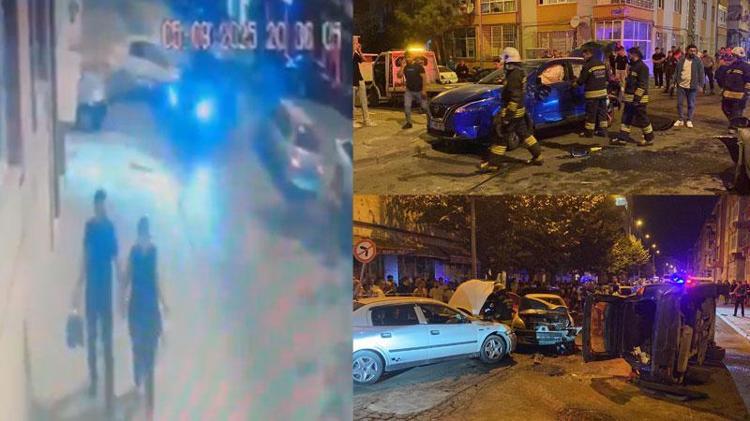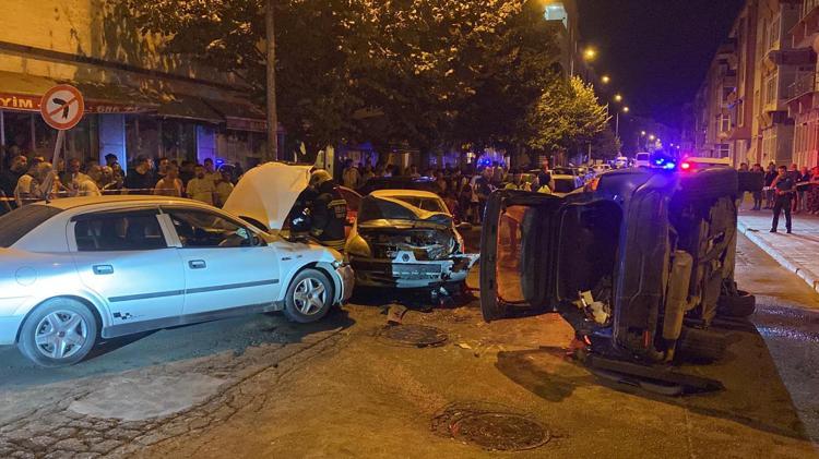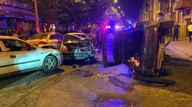 Güvenlik kamerasına yansıyan kazada Evren Şimşek'in kullandığı otomobil yan yatarken, 3 sürücü de hafif yaralandı. İhbar üzerine kaza yerine polis ve sağlık ekipleri sevk edildi.
