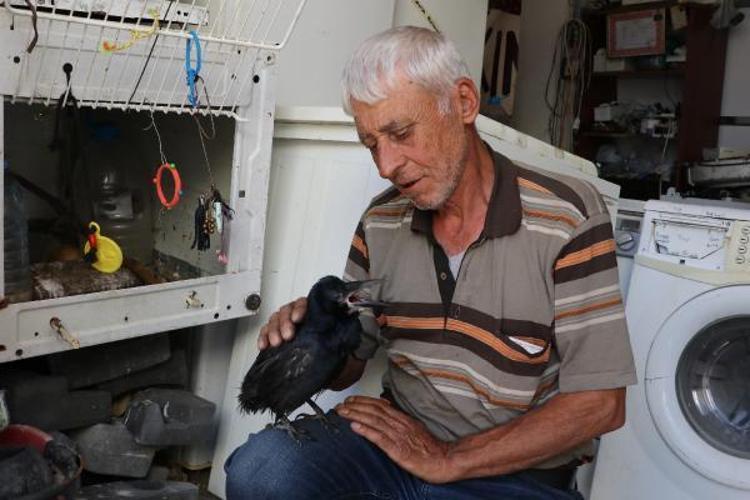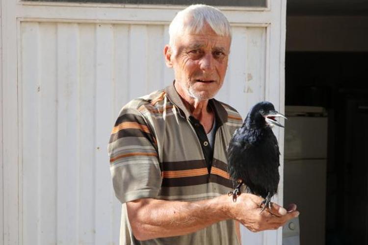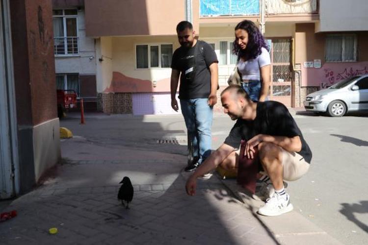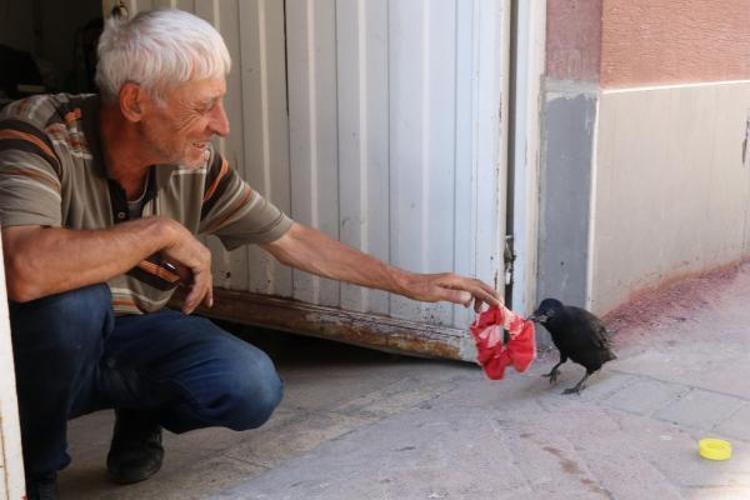 Kediden kurtardığı yavru karga, mahallenin maskotu oldu