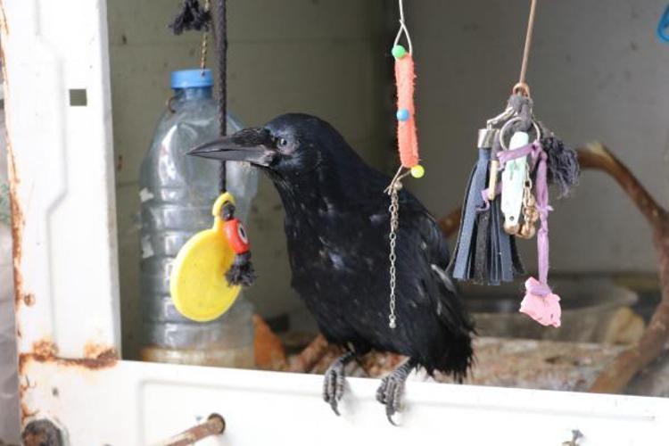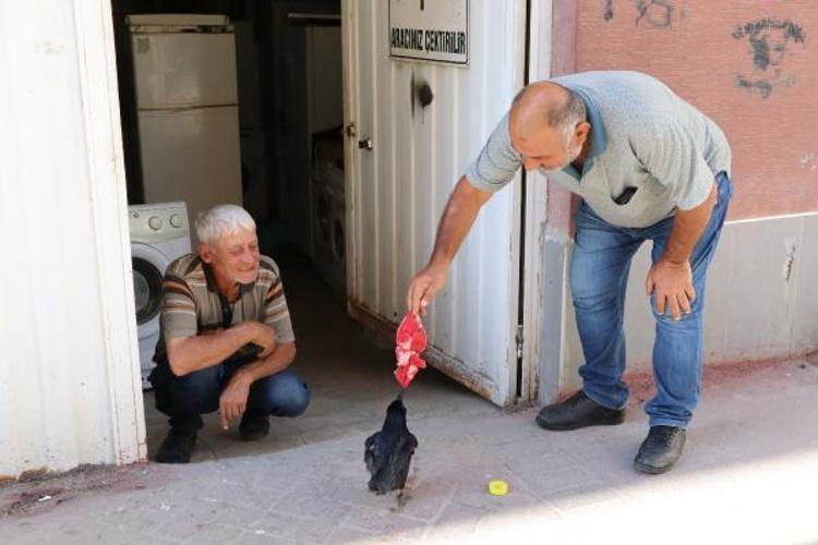 Eskişehir'de beyaz eşya tamircisi Recep Yetim’in (62), yavruyken kediden kurtarıp iş yerinde baktığı Şakir ismini verdiği karga, mahallenin maskotu oldu.