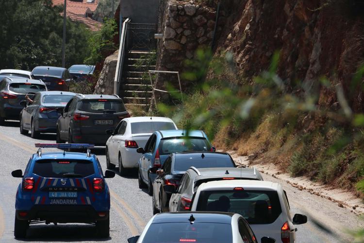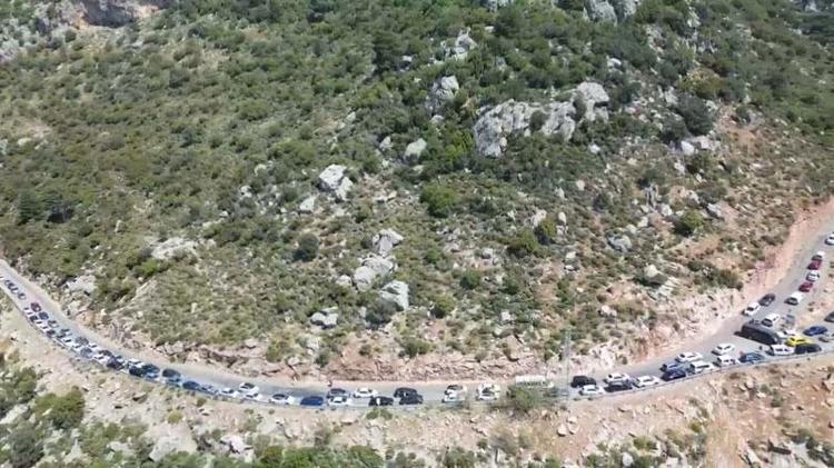 Muğla'nın turistik Fethiye ilçesinde Kelebekler Vadisi'ni gören seyir alanında fotoğraf çektirmek isteyenler tatilciler, Ölüdeniz yolunda uzun araç kuyrukları oluşturdu. Havadan görüntülenen yolda araçların ilerlemekte güçlük çektiği görüldü.