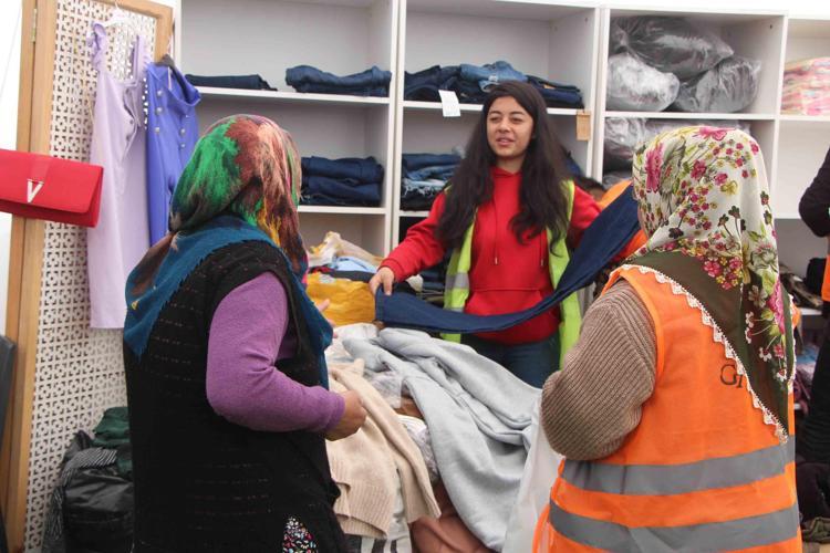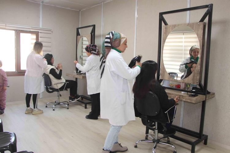 Depremde iş yeri yıkılan kuaför Gülsüm Yıldırım, gönüllü olarak sosyal markette kadınların kişisel bakımlarını yapıyor. Yıldırım, “Kuaför salonum yıkılınca böyle bir şey yapmaya, depremzedelere destek olmaya karar verdim. Bayanların kişisel bakıma ihtiyaçları olduğunu gözlemleyince böyle bir şeye karar verdim.