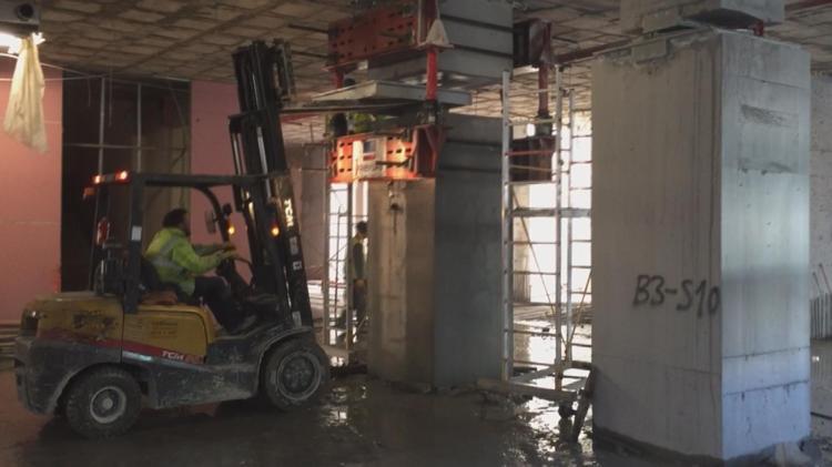 1,5 yıl içerisinde bu izolatörlerin yerleştirilmesi tamamlanıyor" dedi. İzolatörlerin yerleştirilirken kolonun çektiği ağırlık dikkate alınarak planlamaların yapıldığına işaret eden Prof. Dr. Gündüz, sözlerini şöyle sürdürdü: "Her bir kolonda önce kolonun üst ve alt tarafı önce birbirine asıldı, sonra arasındaki beton kısım kesilerek çıkartıldı ve en geç 3 saat içerisinde araya izolatör konarak tekrar plakalarla birleştirildi. Bu yönüyle inşaatından sonra bu kadar çok sayıda, yani 827 adet kolona izolatör yerleştirilen dünyadaki en büyük bina oldu. Dünyada da bir belgesel kanalına konu oldu inşaatı."