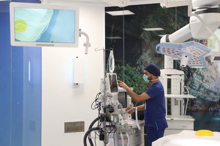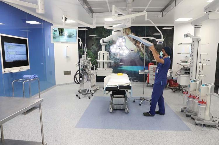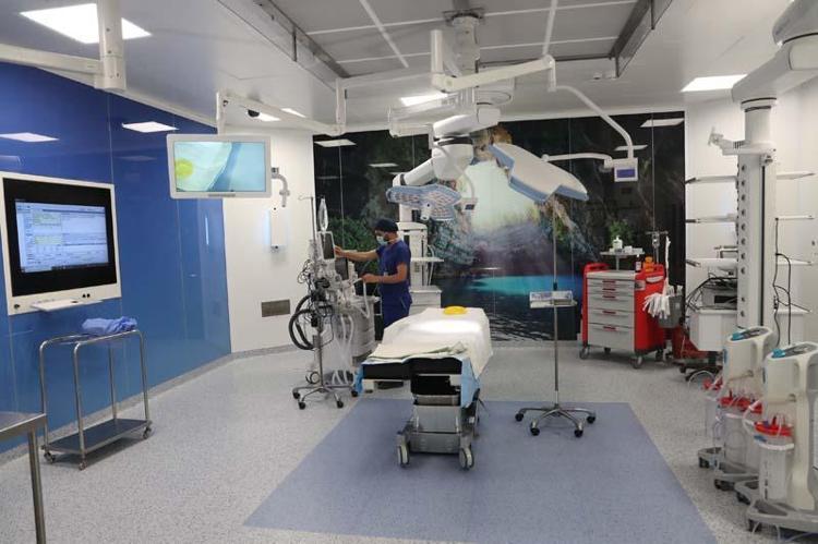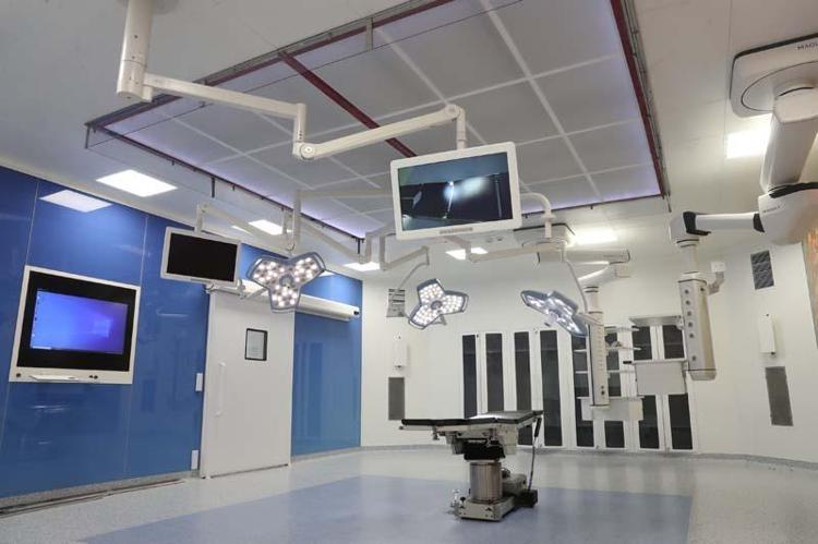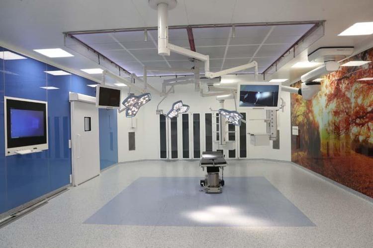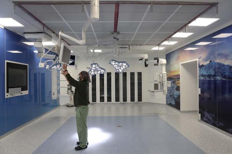 Çoğu büyük özel hastanede dahi bulunmayan üst düzey 28 ameliyathaneden 2 tanesi 66 metrekarelik odadan oluşuyor. Birbiriyle bağlantılı iki ayrı odada aynı anda organ nakli ameliyatları gerçekleştirilebilecek. Ameliyathanelerin tamamının iki duvarında cam, iki duvarında çelik kullanıldığını anlatan Prof. Dr. Gündüz, "Tamamı antibakteriyel özellikli, aynı zamanda yine enfeksiyondan korunma açısından laminar akım özelliğinin olduğu bir havalandırma sistemine sahip.
