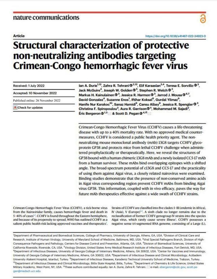 İyileşen 7 ayrı denekten alınan kan örneklerinde moleküler inceleme yapan immünolog, virolog ve mikrobiyologlar; virüste enfekte olduktan sonra vücudun ürettiği doğal antikor hücrelerini izole etti. Laboratuvar çalışmalarında kanda antikor oluşturmaya yarayan ana bağışıklık hücrelerini yapı taşlarına ayrıştıran bilim insanları, doğrudan KKKA virüsüne özgü ‘monoklonal antikor’ üretmeyi başardı. Kanda sadece KKKA virüsünü hedef alan antikorun klonlanıp, çoğaltıldığı ve ölümcül hastalığa karşı ilaç geliştirebilmenin ilk adımı olan çalışma; makaleye dönüştürülerek bilim dünyasına sunuldu. Virüsün bilinen 5 suşunda yapılacak etkinlik çalışmalarından elde edilecek sonuçların, KKKA hastalığının tedavisine umut ışığı olması bekleniyor.