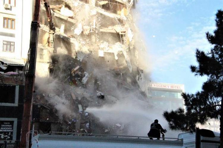 Galeria Sitesi'nin kontrollü yıkımı sırasında bir bloğu daha çökerken, ayakta kalan 2 bloğun yıkım işlemleri sürüyor.