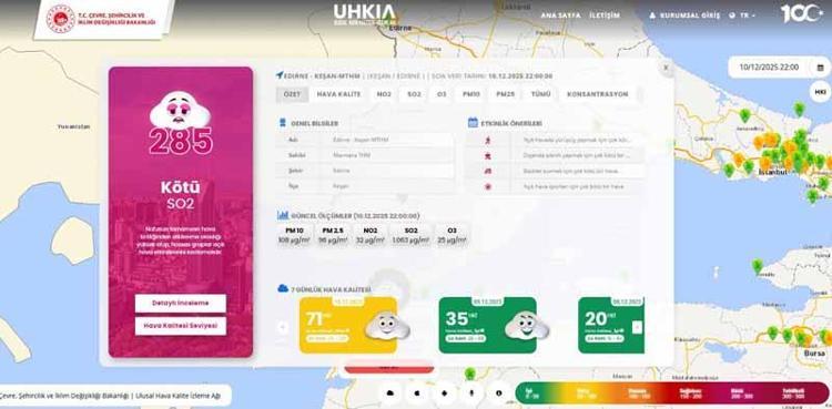 Edirne'nin Keşan ilçesinde Çevre, Şehircilik ve İklim Değişikliği Bakanlığı Sürekli İzleme Merkezi bünyesindeki Ulusal Hava Kalitesi İzleme Ağı'nın güncel verilerine göre; atmosferin hava kalitesini etkileyen partikül madde oranlarında artış görüldü. Yine bu verilere göre; Dünya Sağlık Örgütü'nün metreküp başına 50 mikrogram olarak belirlediği partikül madde sınır değeri, 5 kattan fazla artarak 285’e yükselerek 'kötü' değerlere ulaştı.