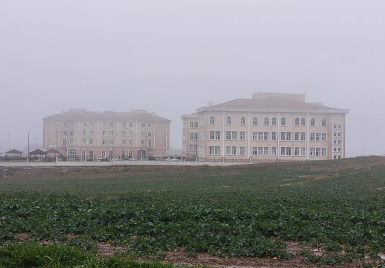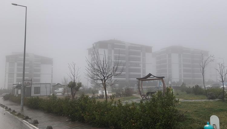 Edirne'nin Keşan ilçesinde sabah saatlerinde sis etkili oldu. Sis nedeniyle binalar gözden kayboldu.