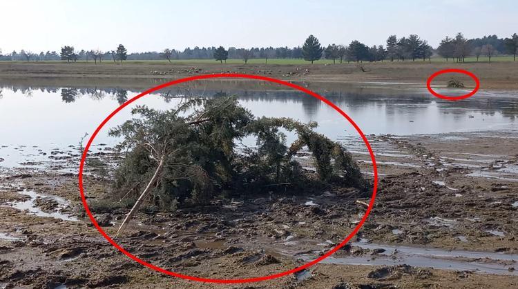 Kestikleri ağaçları mevzi yapıp, 200’ün üzerinde türün yaşadığı göletteki kuşları avladılar