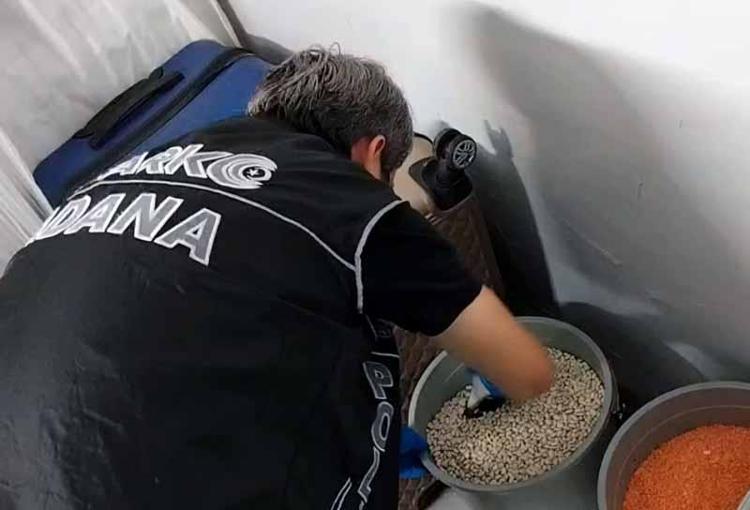 Adana'da uyuşturucu satıcılarına yönelik operasyonda 7 şüpheli, gözaltına alındı. Şüphelilerden M.K.'nin evinde, kilerdeki kuru fasulye kovasının içine gizlenmiş 100 gram bonzai ele geçirildi.