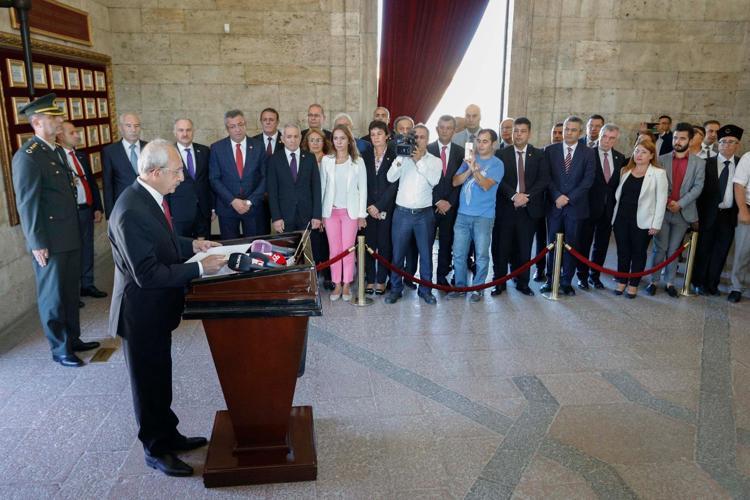CHP Genel Başkanı Kemal Kılıçdaroğlu, partisinin 96'ncı kuruluş yıl dönümü nedeniyle partililerle birlikte Anıtkabir'i ziyaret etti.