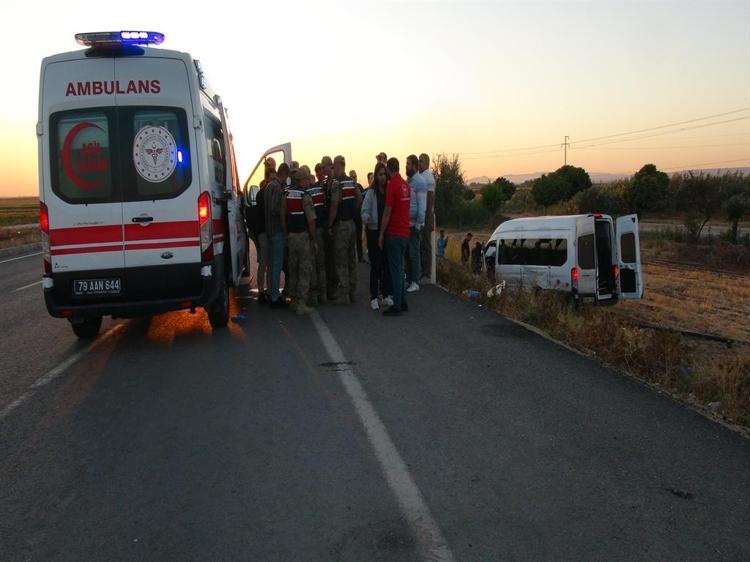 Kilis'te, minibüs ile otomobilin çarpıştığı kazada 12 kişi yaralandı.