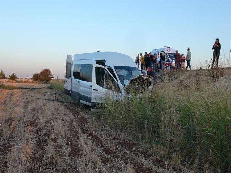 Çarpışmanın etkisiyle kontrolden çıkan minibüs yol kenarındaki tarlaya devrildi.