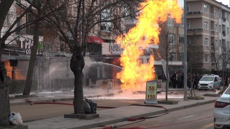 Kırıkkale'de, belediye ekiplerince yolda yapılan kazı sırasında doğal gaz hattı ile elektrik hattının zarar görmesi sonucu çıkan yangında, 1 işçi yaralandı.