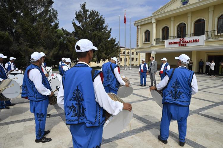 Türkiye'nin başpehlivanının belirlendiği, bu yıl 3-9 Temmuz tarihleri arasında gerçekleştirilecek 662'nci Tarihi Kırkpınar Yağlı Güreşleri haftası kapsamında, organizasyonun 'karşılama' geleneği yapıldı. Kırkpınar'ın 40 kişiden oluşan davul ve zurna ekibi, sabah saatlerinde Edirne Vali Vekili Sıdkı Zehin ve Belediye Başkanı Recep Gürkan'ı makamlarında karşılayarak, Kırkpınar'ın başladığının müjdesini verdi. Ekip, ilk olarak organizasyona ev sahipliği yapan Gürkan'ı belediye binası önünde karşıladı. Gürkan, davul ve zurna ekibine gelenek gereği para verdi