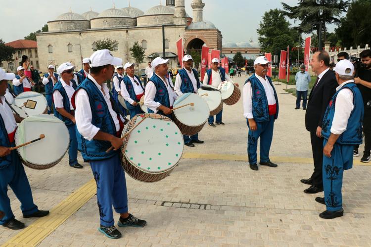 Unesco İnsanlığın Somut Olmayan Kültürel Mirası Listesi'ndeki Tarihi Kırkpınar Yağlı Güreşleri Festivali haftasında, 40 kişiden oluşan Kırkpınar davul ve zurna ekibinin 'karşılama' geleneği yapıldı.