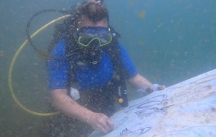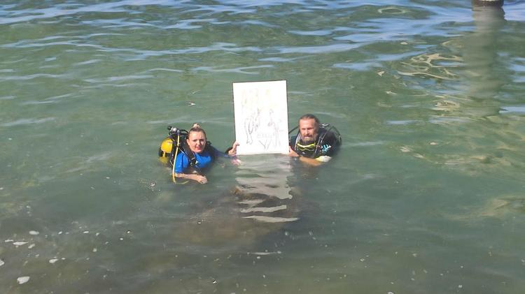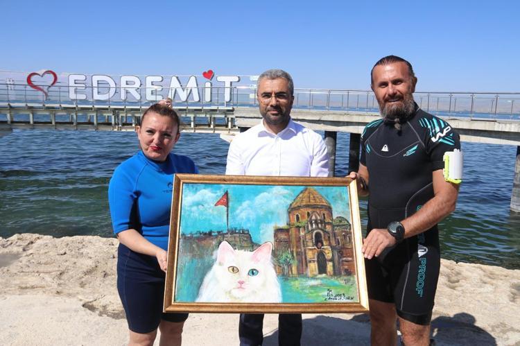 Kirliliğe dikkat çekmek için Van Gölü'ne dalış yapıp, su altında resim çizdi