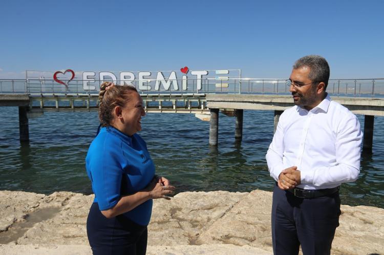 Yine bir süre önce özellikle Van Gölü’nün korunması ile sit alanına alınması koruma imar planı yapılması ile ilgili çalışmalar başladı. Bu vesileyle de Sayın Cumhurbaşkanımızın kıymetli eşleri Sayın Emine Erdoğan Hanımefendiye de himayelerine almalarından ve bu çalışmayı yürütmelerinden dolayı teşekkür ediyoruz. Edremit Belediyesi olarak sıfır atık ve Van Gölü koruma çalışmalarımı sürüyor" diye konuştu.