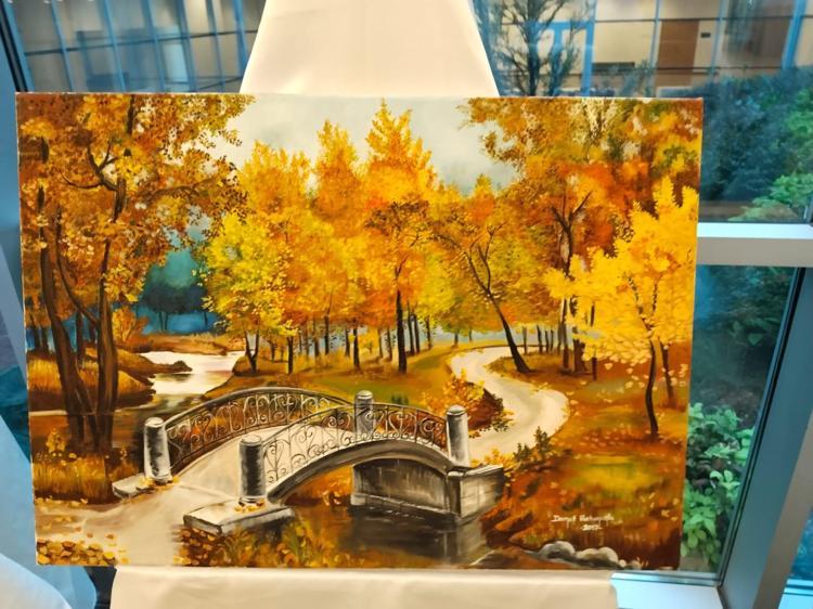 Kırşehir'de ev hanımı Demet Hatunoğlu (55), Anneler Günü nedeniyle karma yağlı boya resim sergisi açtı.