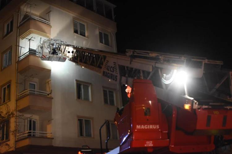 Kısa sürede adrese ulaşan ekipler, çevre kontrolünü sağlayıp, üst katlarda mahsur kalan 14 kişiyi evlerinin cam ve balkonlarından tahliye etti. Apartmanın çatı katında bulunan bir kedi de ekipler tarafından kurtarıldı.