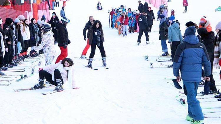 Öğrenciler, 2 bin 500 rakımdaki acemi pistinde eğitmenler eşliğinde kayak eğitimi aldı. İlk kez kayak deneyimi olan öğrenciler heyecanlı anlar yaşarken, bazıları zaman zaman dengelerini kaybederek yere düştü.