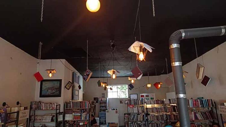 Bursa’da yaşayan Abdullah Ertürk (55), dijital çağın kültürel etkileri ile yıllardır hayalini kurup, hayata geçirdiği kitap kafeyle mücadele ediyor. Bazı kitapları tavana asarak, söz ve yazı sanatının teknoloji karşısında yenildiği ve yok olduğu mesajını veren Ertürk, kalan eserleri de raflara yerleştirerek, kafeyi kültürel bir hafıza mekanına dönüştürdü.