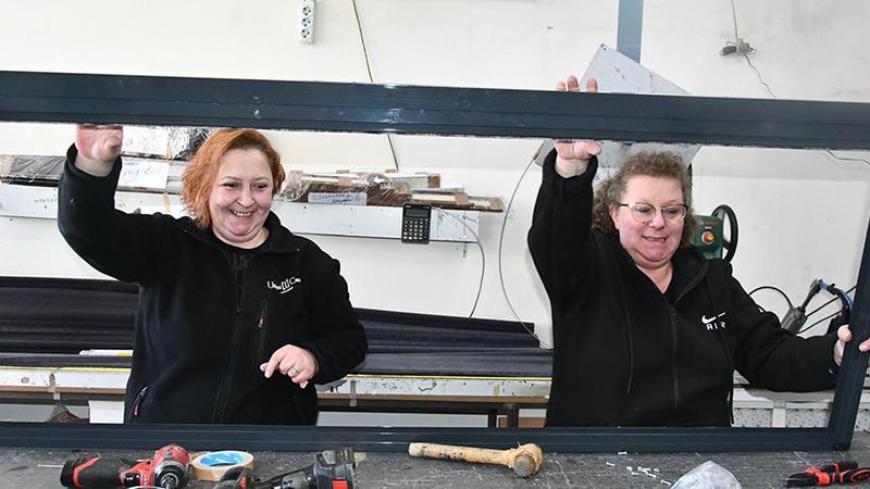 Kırklareli'nin Lüleburgaz ilçesinde Fehime Memduh (45) ile ablası Birsen Arı (46), sanayi sitesinde yıllardır alüminyum doğrama atölyesi işletiyor.