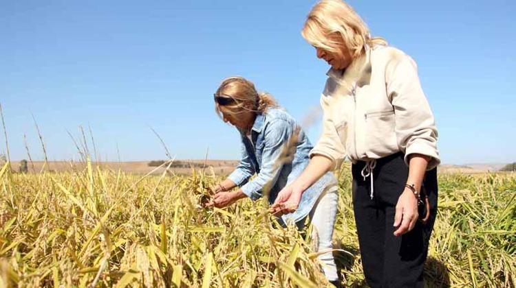 Kız kardeşler işlerini bırakıp 176 dönümlük alanda çeltik üretiyor