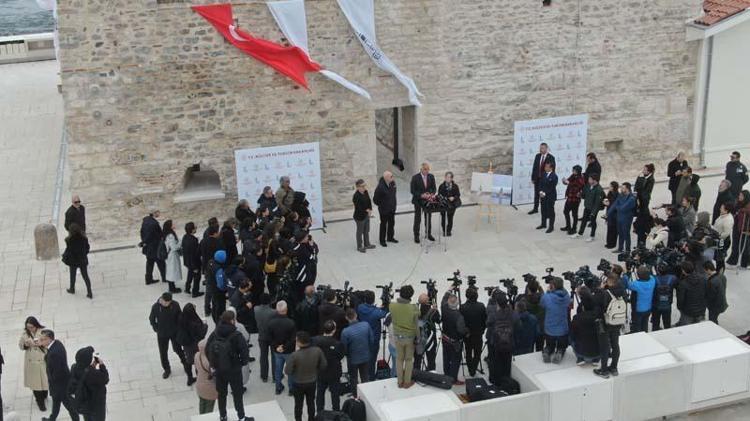 Kız Kulesi'ne ait 1826 ve 2023 yıllarına ait fotoğrafları işaret eden Bakan Ersoy, "Bina depreme karşı güçlendirildi. II.Mahmut dönemi dedik. Elimizdeki en iyi dokümanlar vardı. Sadece fikir sahibi olmanız için bakın binanın 1826'daki görüntüsü. Bu 1826'da çekilmiş II.Mahmut dönemine ait fotoğrafı. Bu da 2023'teki fotoğrafı. Binanın aslına uygun olarak nasıl restore edildiğini burada da görebiliyorsunuz.