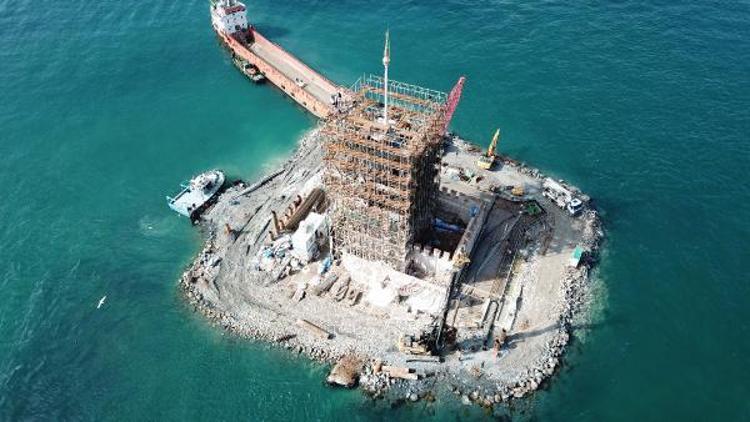 Ada sınırları hizasında ise ortalama 24 metre derinlikteki ana kayaca ankre çelik-betonarme bütünleşik kazık imalatı yapılıyor.
