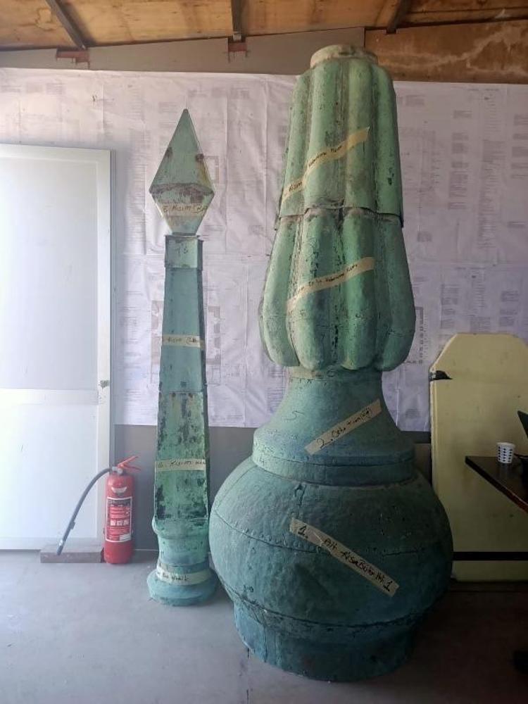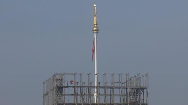 Kız Kulesi'nin çevresine kurulan iskelede restorasyon çalışmaları devam ederken, kulenin kubbe kısmının aslına uygun olarak yeniden ortaya çıkarıldığı ve kaplama aşamasına geçildiği görüldü.