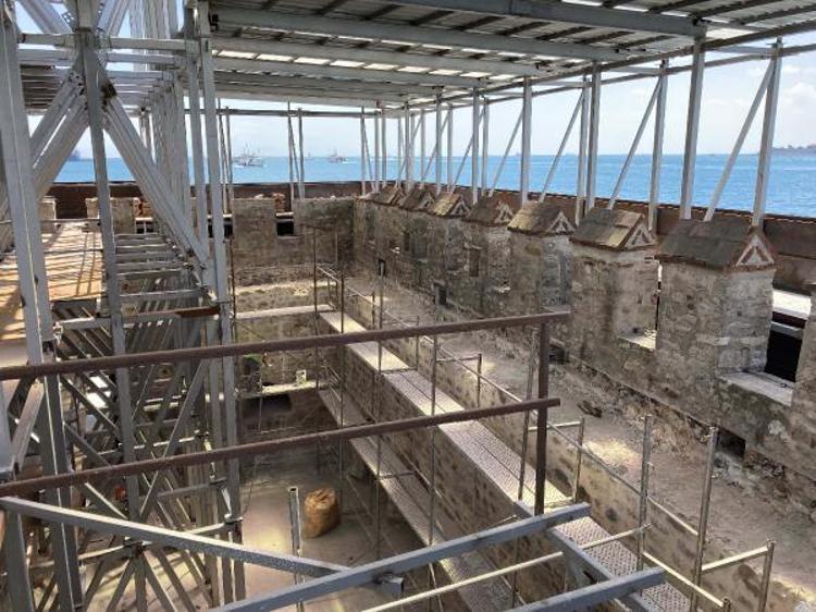 Kulenin duvarlarında iskele sökümleri yapılırken, kule ve kale restorasyon çalışmalarına ilave olarak ada çevresinde zemin güçlendirme çalışmaları yapıldığı belirtildi.