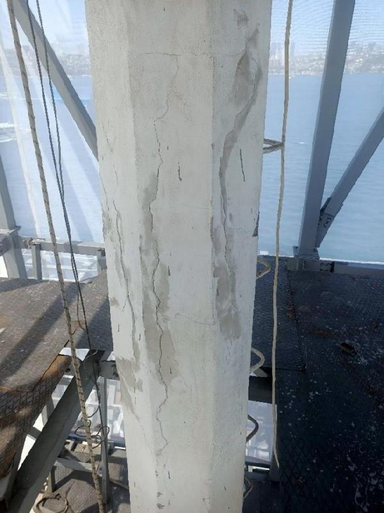 Fotoğraflarda, kulenin külah kısmında bağlayıcılığını kaybetmiş çimento ve korozyona uğramış demirler, bayrak direğindeki hasarlar, döşeme ve kolonlarında deniz kumunun kullanılması ve midye kabuğu, kıyı betonlarındaki hasar ve ayrışmalar dikkat çekiyor.