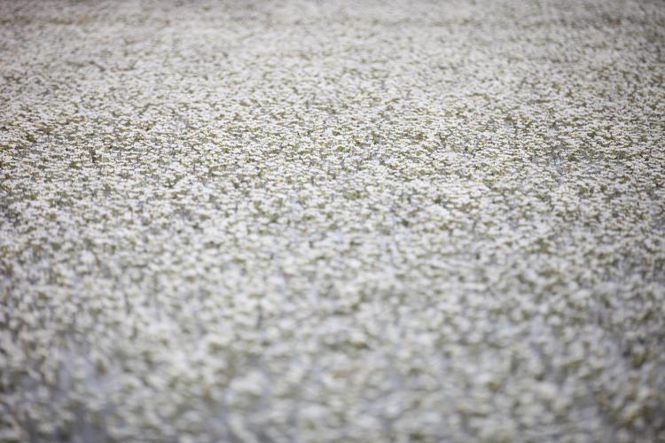 Samsun’da Kızılırmak Deltası'nda suda açan ve zehirli oldukları için 'zehirli güzellik' olarak da bilinen su düğün çiçekleri, Kızılırmak Nehri'nin üstünü örttü.