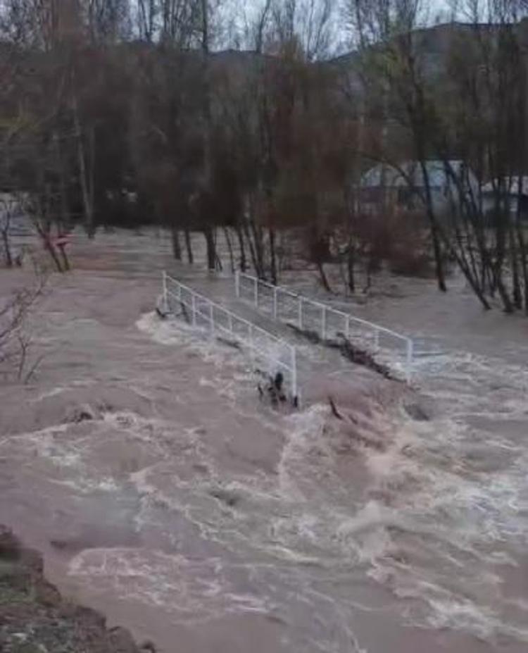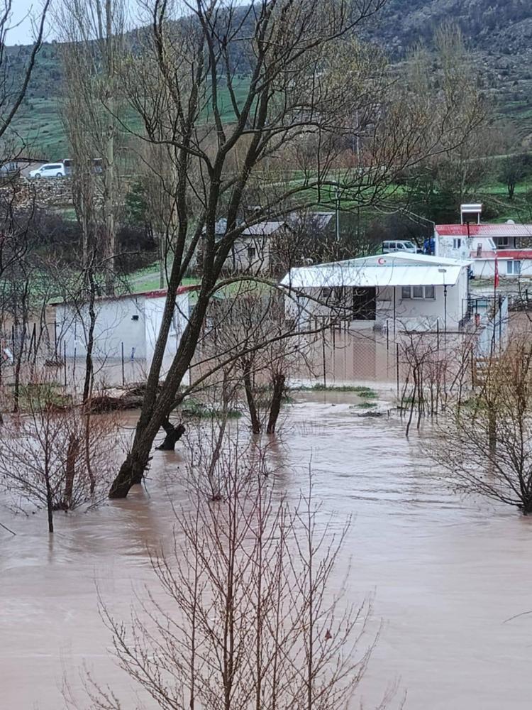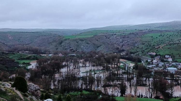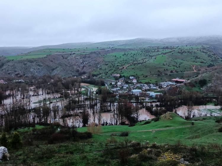 Sivas'ın Zara ilçesinde etkili olan sağanak nedeniyle Kızılırmak’ta meydana gelen taşkında Ahmethacı köyünde bazı ev ve ahırları su bastı.