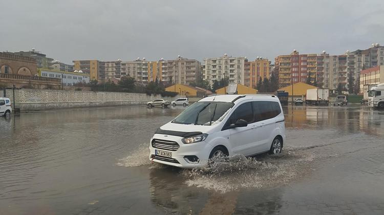 Kızıltepe ilçesinde etkili olan sağanak yağış nedeniyle birçok cadde ve sokak suyla doldu, araçlar ilerlemekte güçlük çekti.