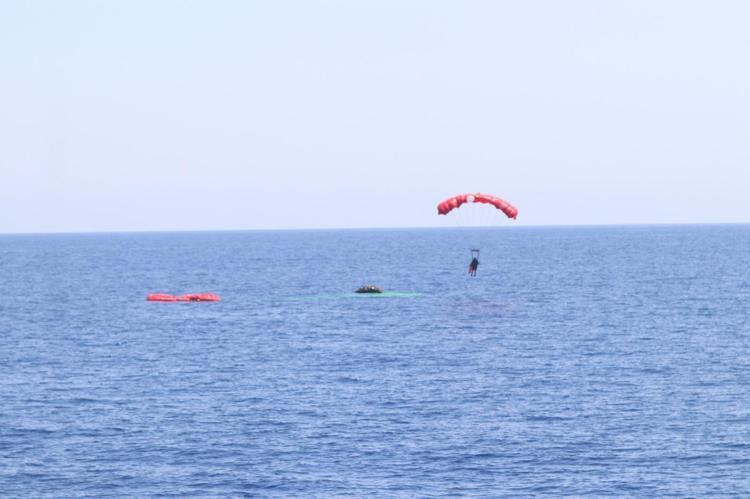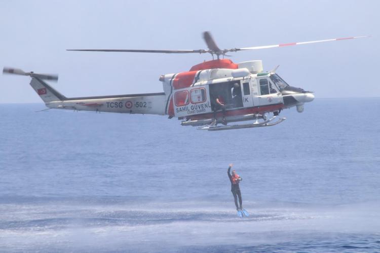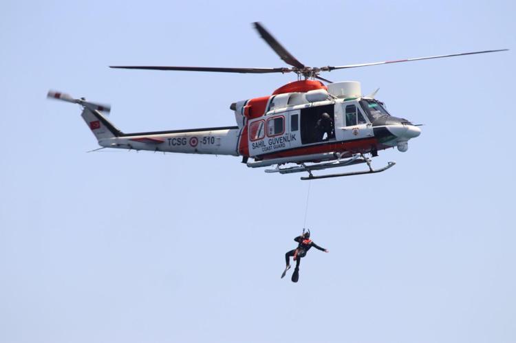İkinci aşamada ise arama kurtarma timi, belirlenen hedefe 5 bin fit yükseklikten paraşütle atladı. Tim, kazazedeleri olay yerine gelen sahil güvenlik botuna teslim etti. KKTC kara sularında akaryakıt tankeri ile kuru yük gemisinin çarpışması sonucu yapılan yardım çağrısı üzerine arama kurtarma çalışmaları gerçekleştirildi.