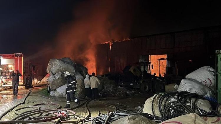 Yangın, saat 19.00 sıralarında ilçeye bağlı Pelitli Mahallesi 4464 Sokak’taki atık plastik deposunda çıktı.