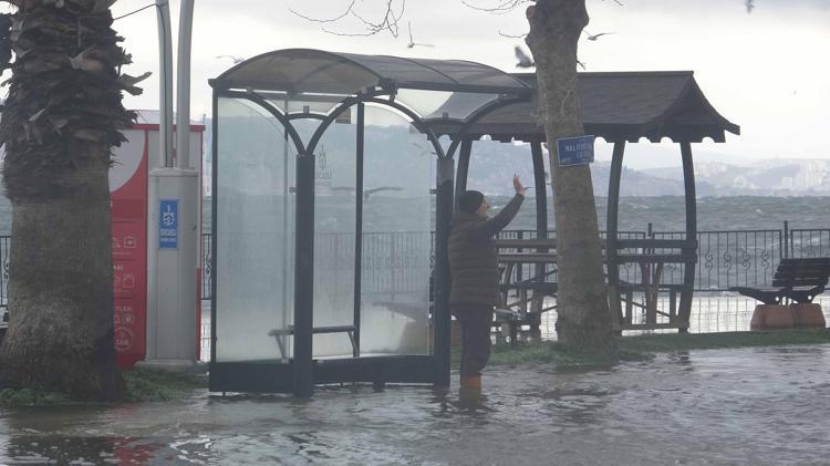 Kocaeli’nin Gölcük ilçesinde etkili olan lodos nedeniyle deniz taştı, sahil kesimindeki cadde ve yollar göle döndü.