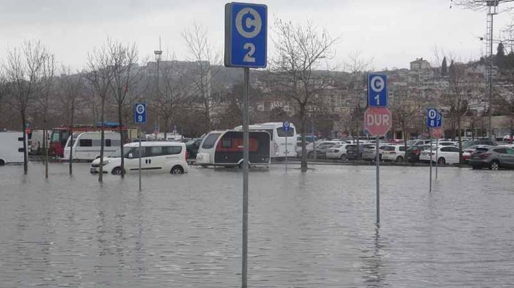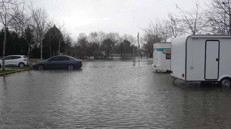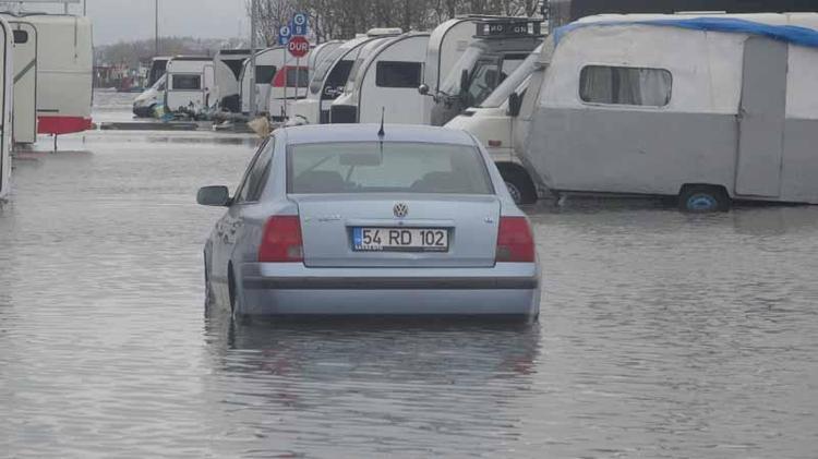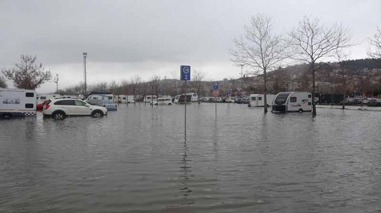 Bölgede bulunan karavanlar ve araçlardan bazıları su içinde kaldı. Kocaeli Büyükşehir Belediyesi ekipleri, dubalarla otoparkın bir bölümünü araç ve yaya geçişine kapattı.