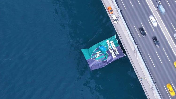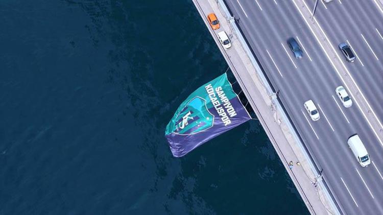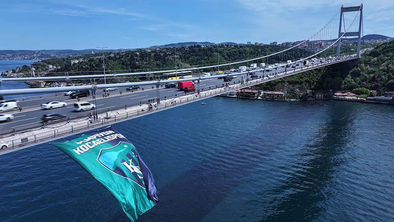 1. Lig 2024-2025 sezonu şampiyonu Kocaelispor’un dev bayrağı, Kocaeli Büyükşehir Belediyesi tarafından Fatih Sultan Mehmet Köprüsü’ne asıldı.