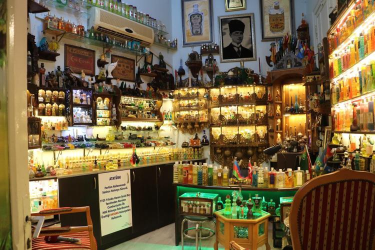 1925'te Hasan Şevki Bey tarafından Hassan Milli Kolonya Fabrikası kurulduğunu hatırlatan Ünal Çınar, "Atatürk'e hediye olarak buradan kutulu kolonya gönderilmiş. Dünyada sadece 3 tane bu kolonya kutusundan var, biri de bende" dedi. (DHA)