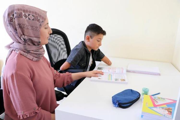 Öğretmeni her gün eve gelerek eğitim veriyor. Elektronik protez çok pahalı olduğu için imkanımız yetmiyor.